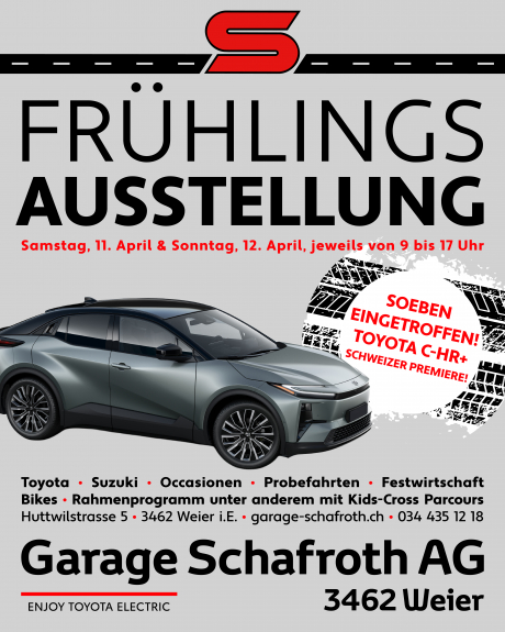 Die Tage werden wieder länger und die Temperaturen steigen. Höchste Zeit für unsere traditionelle Frühlingsausstellung. Bei uns finden Sie alles, was das Herz begehrt. Vom großartigen Bike für die nächste Tour, über die neusten Toyota Fahrzeuge, bis zu den SUZUKI 4x4.